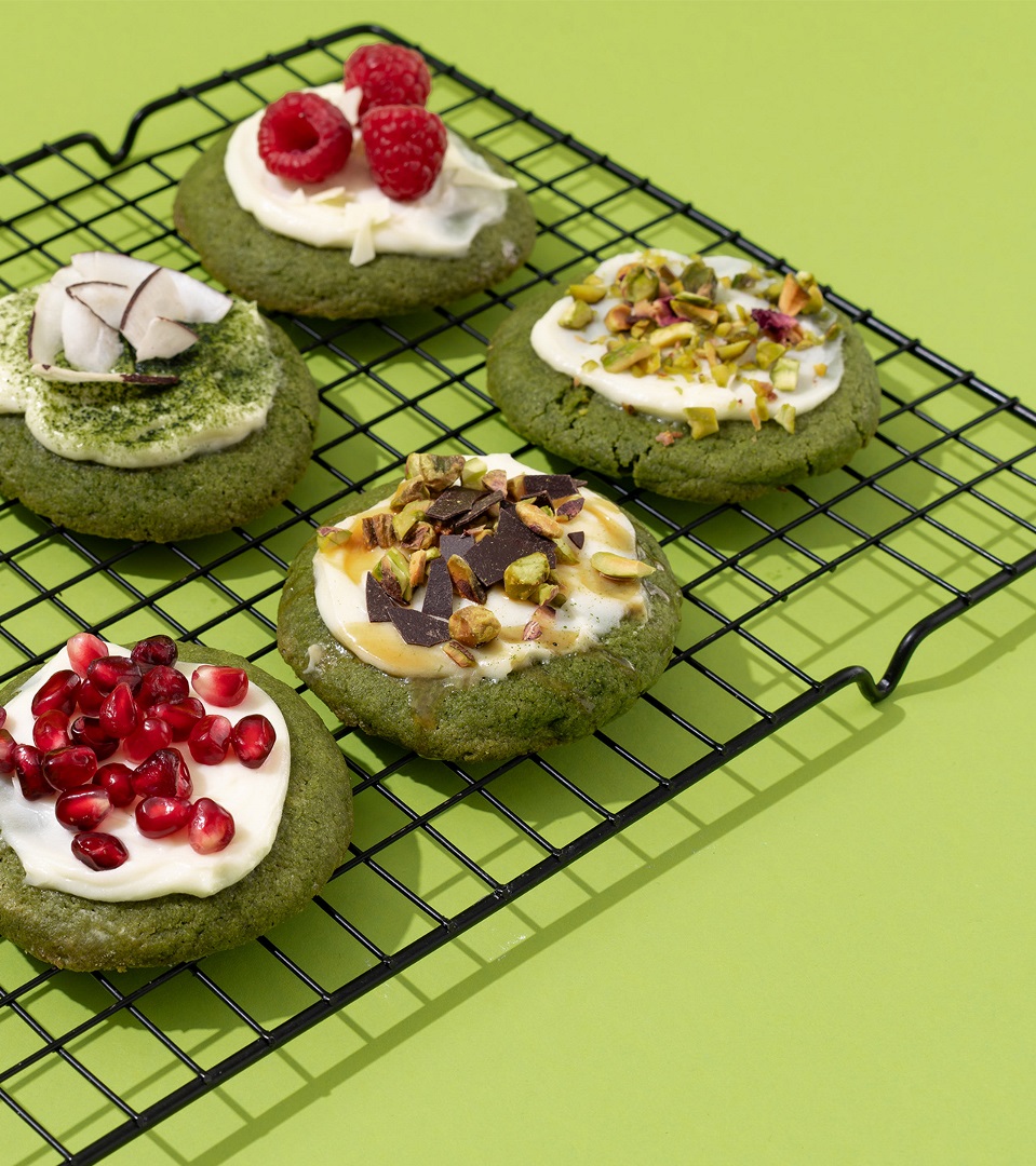 Die weiche, saftige Cookie-Basis trifft auf eine luftige Creme, die an einen Matcha Latte mit Milchschaum erinnert – nur eben in Gebäckform. Perfekt für besondere Genussmomente, zum Teilen mit Freund:innen oder als stilvoller Hingucker auf der Kaffeetafel.
