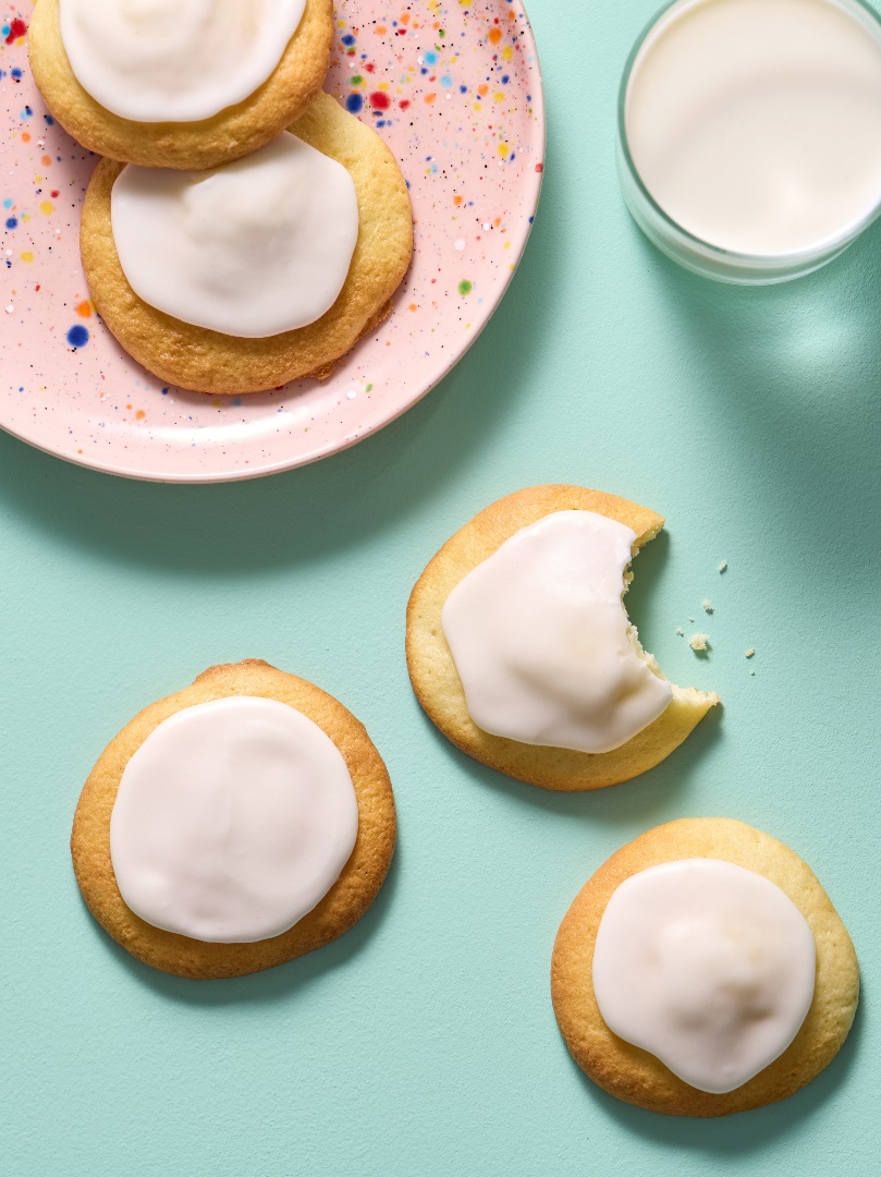 Für die Glasur Diamant Glasurzucker und Zitronensaft glattrühren. Optional einfärben. Auf die ausgekühlten Cookies streichen und nach Wunsch verzieren. Trocknen lassen.
