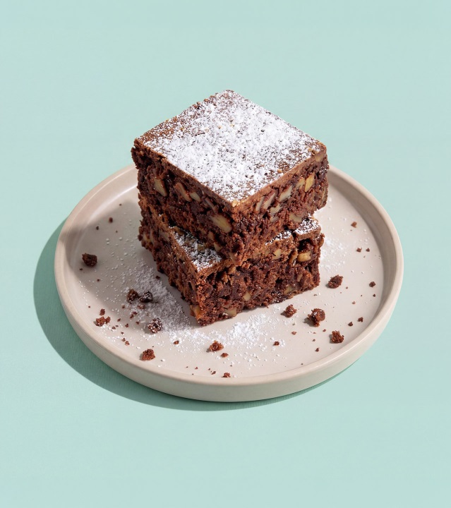 Bei der typischen Brownie-Konsistenz ist der Teig innen noch etwas feucht.