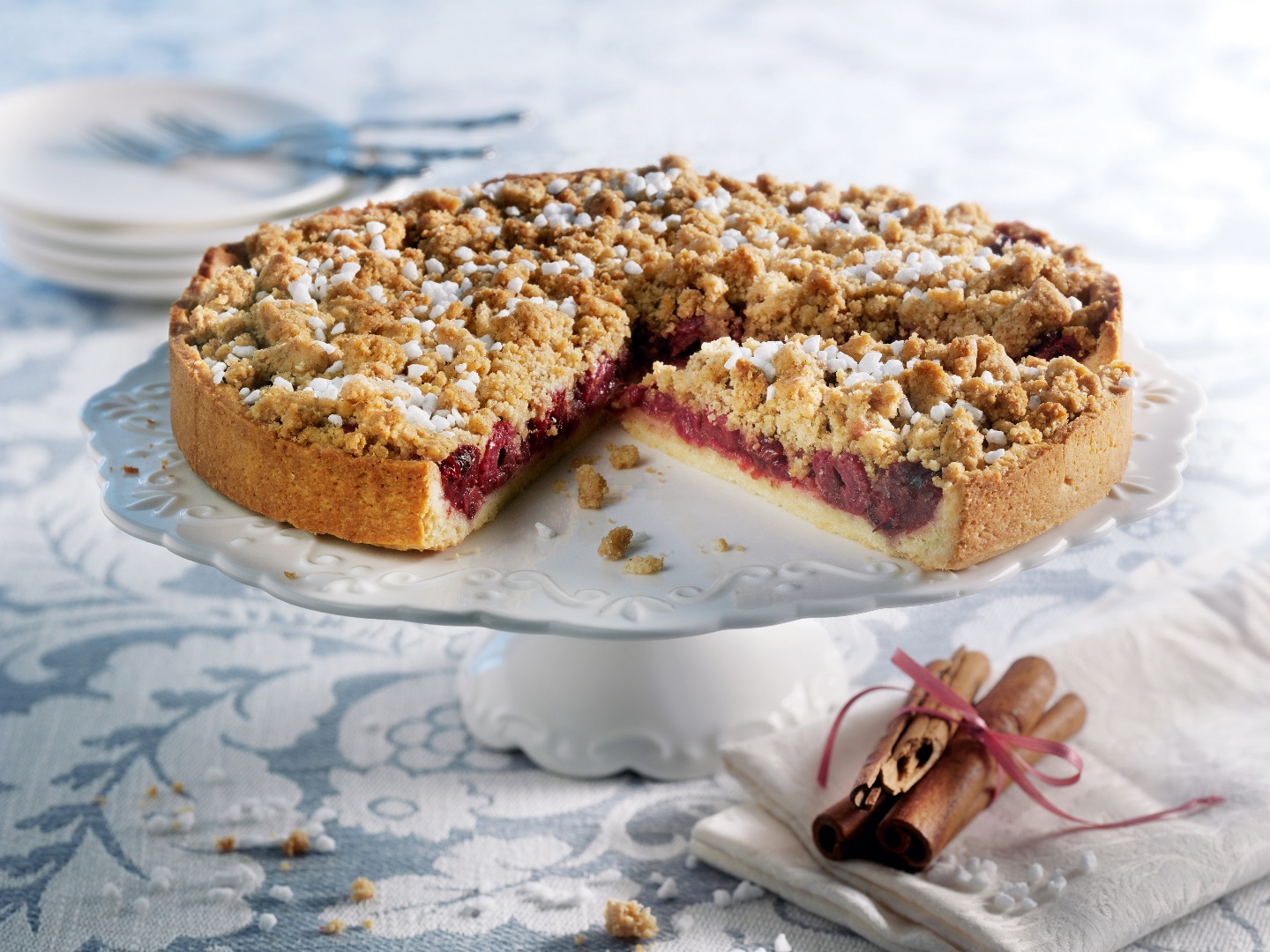 Kirschen in einer ihrer köstlichsten Formen: Verpackt zwischen frischem Mürbeteig und knusprigen Zimt-Streuseln darf dieser Klassiker im Sommer nicht fehlen.