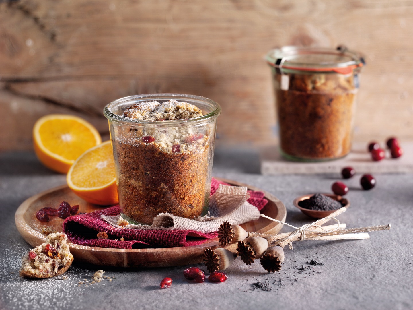 Mehl mit Backpulver und Mohn mischen und abwechselnd mit Joghurt unterrühren. Zuletzt Cranberrys unterheben.