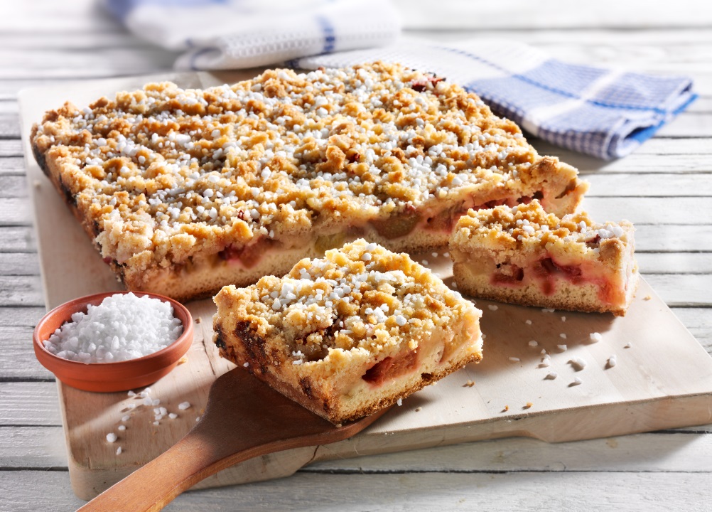 Rhabarberkuchen anschließend mit Diamant Hagelzucker bestreuen.