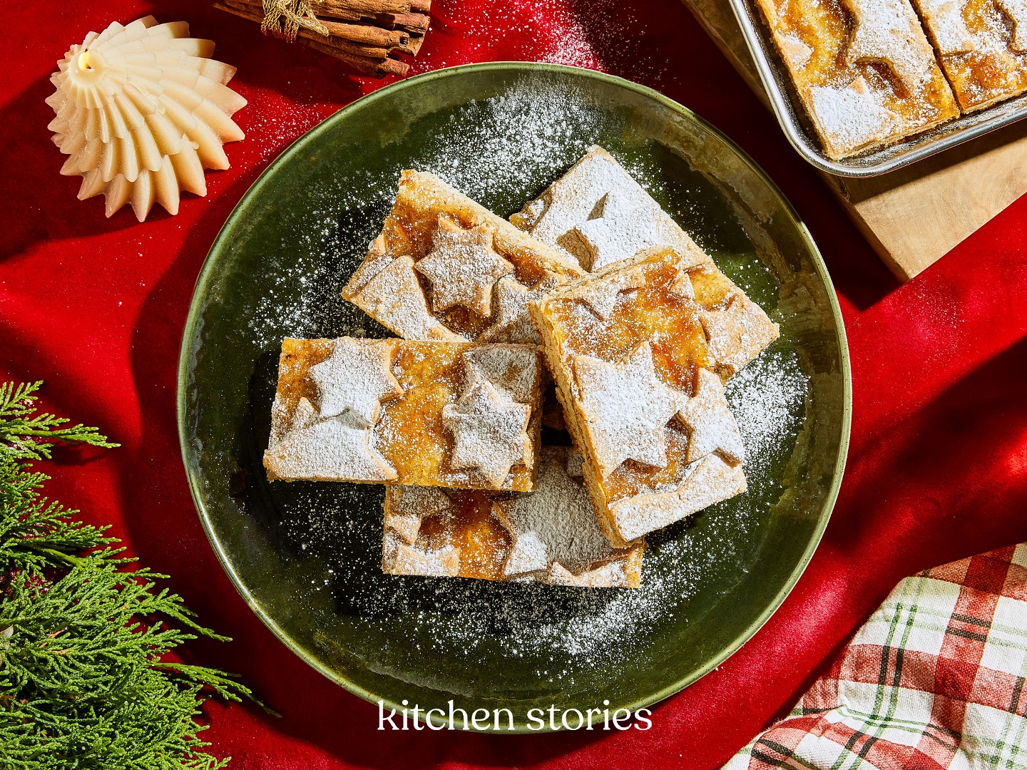 In Zusammenarbeit mit kitchen stories entstand dieser einfache Blechkuchen mit würziger Marmeladenfüllung. Schnell und einfach für ganz viele Weihnachtsgäste.