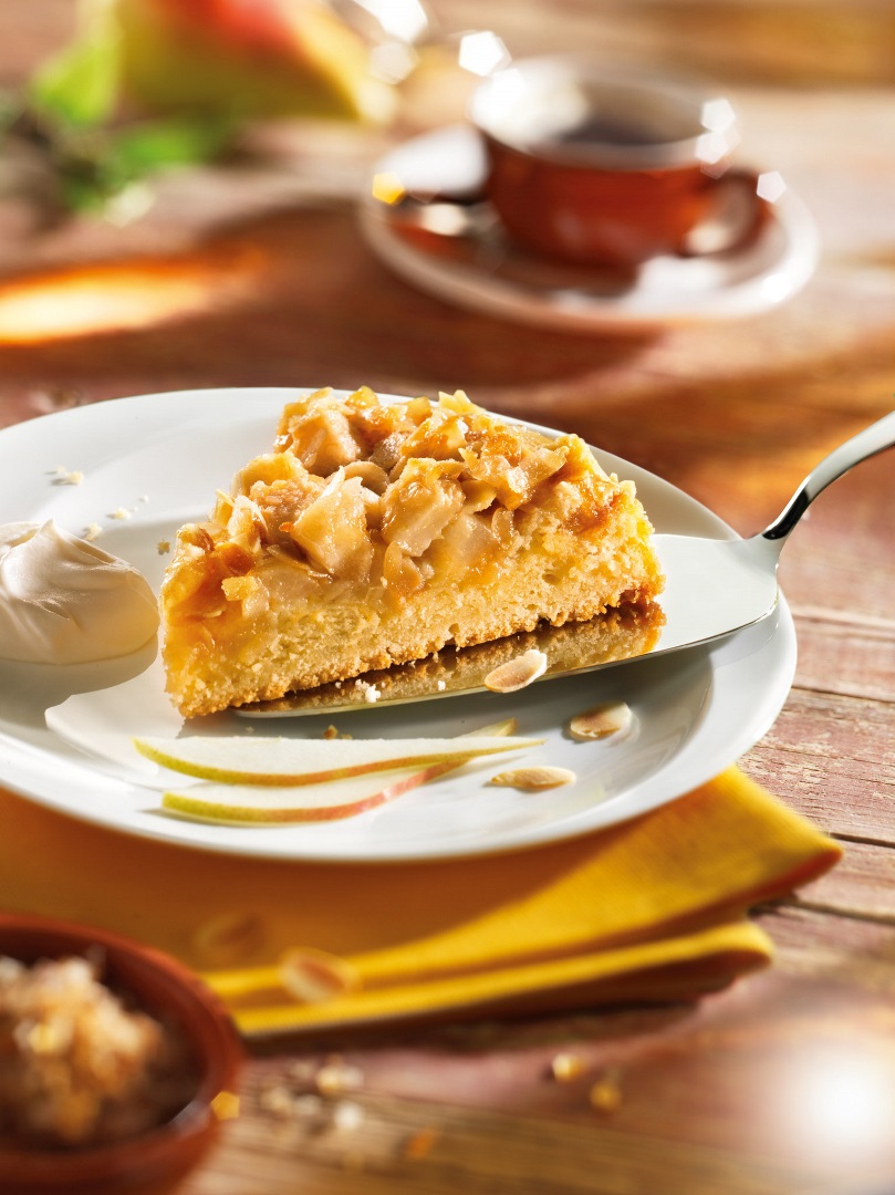 Mandeln anrösten. Birnen schälen, entkernen und würfeln, mit Diamant Grümmel Kandis und den gerösteten Mandeln vermischen. Alles zusammen auf den Teig geben und mit Diamant Brauner Zucker bestreuen.