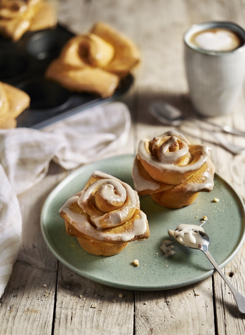 Milch mit Butter erwärmen, sodass die Butter schmilzt. Abkühlen lassen, bis die Milch lauwarm ist.Mehl mit Trockenhefe, Salz und Diamant Feinster Zucker in einer Schüssel mischen. Vanillepaste und Milch-Buttermischung zugeben und zuerst mit dem Handrührgerät oder der Küchenmaschine (Knethaken), dann mit den Händen mindestens 5 Minuten zu einem glatten Teig verkneten.Teig mit einem feuchten Tuch abgedeckt an einem warmen Ort ca. 60 Minuten gehen lassen, bis er sich sichtlich vergrößert hat.Teig auf einer bemehlten Arbeitsfläche nochmal kurz durchkneten und rechteckig ausrollen (ca. 40 x 50 cm). Muffinformen gut einfetten.Für die Füllung Butter schmelzen. Teig gleichmäßig bis zum Rand mit Butter bestreichen. Diamant Feinster Zucker mit Zimt mischen und auf den Teig streuen. Mit einer Palette oder einem Messer den Teig unten von der Arbeitsplatte lösen. Dann parallel zur langen Seite mit einem scharfen Messer (oder einem Pizzaschneider) in 8 gleich breite Streifen schneiden, diese wiederum in jeweils 6 rechteckige Stücke teilen.Jeweils 4 Stücke leicht überlappend hinlegen, zur Rose einrollen und aufrecht in die Muffinform stellen, sodass die Schneckenform zu sehen ist. Mit den restlichen Stücken wiederholen. Nochmal 20 Minuten an einem warmen Ort gehen lassen.Im vorgeheizten Backofen bei Ober-/Unterhitze 180 °C (Umluft ca. 160 °C) ca. 20–25 Minuten goldbraun backen. Aus dem Ofen nehmen und abkühlen lassen.Für die Glasur Diamant Glasurzucker mit Zimt in eine Schüssel geben. Wasser nach und nach dazugeben und zu einer Glasur anrühren. Lauwarme Zimtschnecken mit der Glasur überziehen und trocknen lassen.