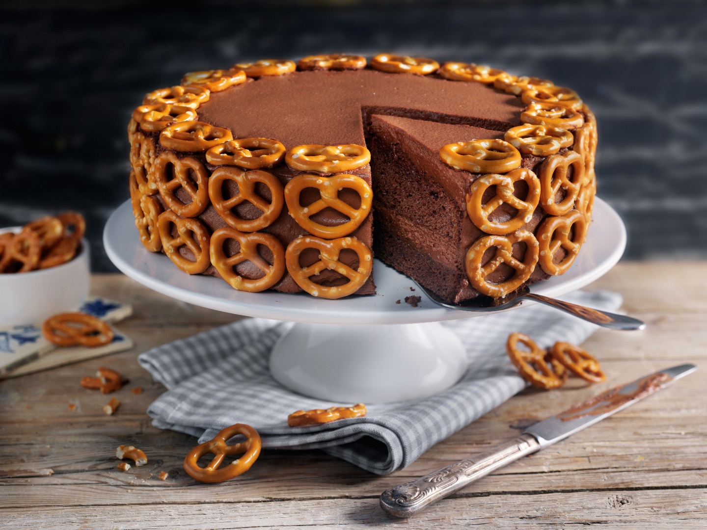 Schokoladig, sahnig, mit der Note von irischem Whiskey: Back mit diesem Rezept eine Schoko-Sahne-Torte mit Salzbrezeln und Irish-Cream-Likör wie z. B. Baileys.