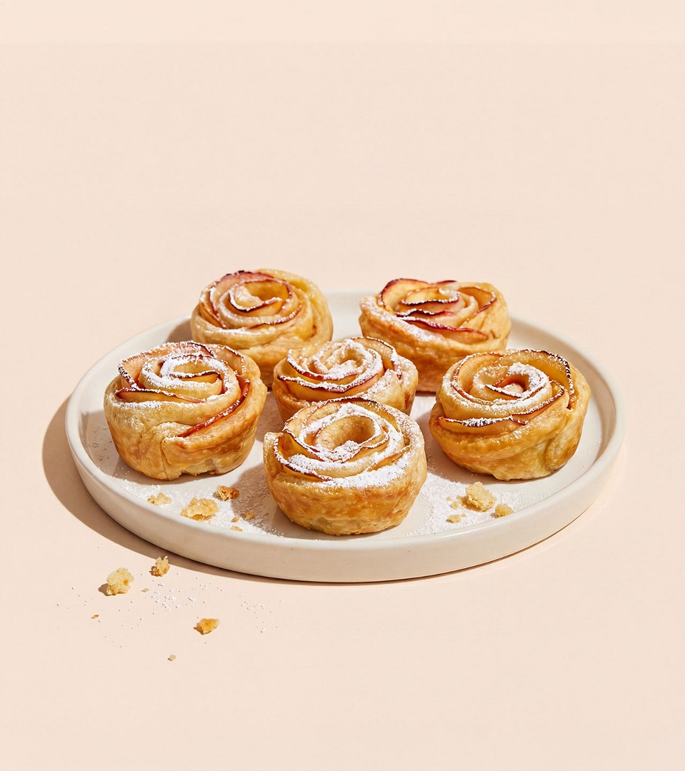 Blätterteig-Apfel-Rosen aus dem Airfryer – ein Hingucker auf jeder Kaffeetafel. Diese hübschen Rosen aus Blätterteig und Apfel sehen mit der feinen weißen Schneedecke noch hübscher aus!