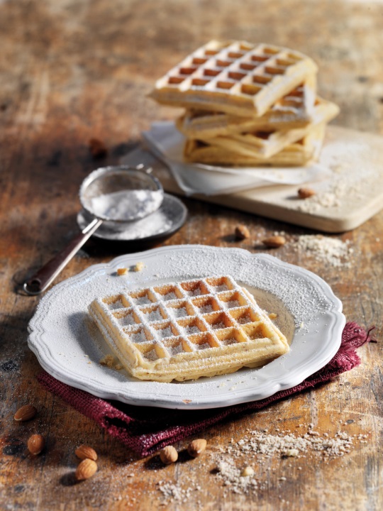 Den Teig im Waffeleisen portionsweise goldbraun backen.