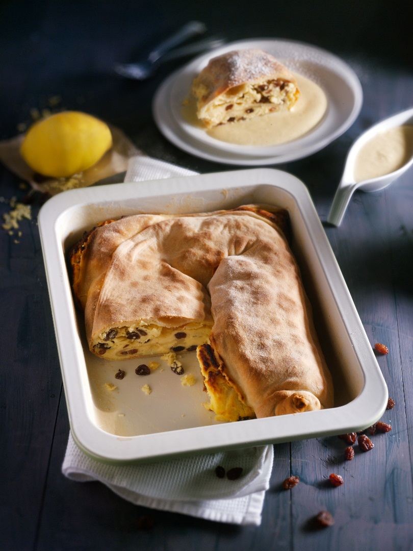 Tipp: Nach der Hälfte der Backzeit etwa 125 ml Milch über den Strudel gießen, dann wird er noch saftiger.