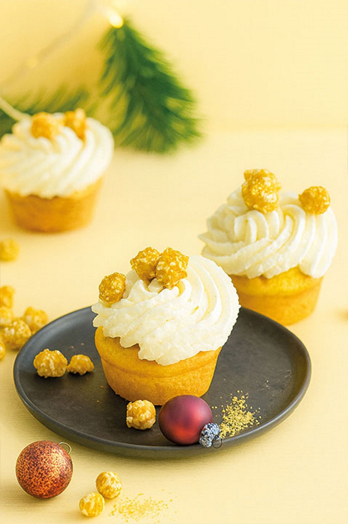Das knusprige Salz-Karamell-Popcorn ist der Clou auf diesem fein-würzigen Cupcake mit cremigem Frosting!
