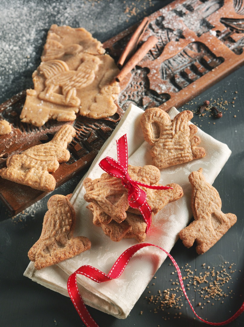 Teig in die gut bemehlten Holzmodel drücken, überstehenden Teig abschneiden und die Plätzchen aus dem Model klopfen.