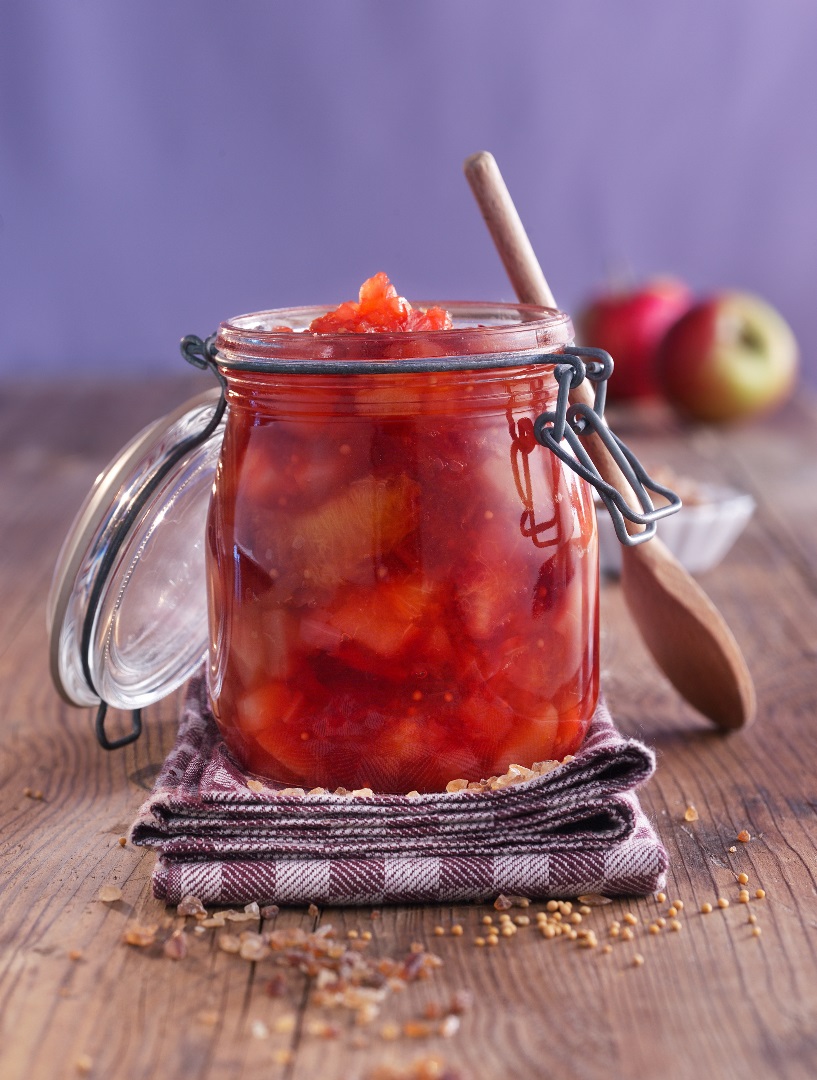 Das Mullsäckchen entfernen, Chutney mit Salz und Pfeffer abschmecken, in Gläser füllen und sofort verschließen.