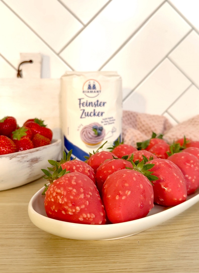 Die feinen Patisserie-Kreationen von Cédric Grolet sind derzeit in aller Munde: Unsere Variante ist von außen täuschend echte Erdbeere, von innen feinster Erdbeerkern, umhüllt von Quarkmousse. Ein Genuss für alle Sinne!