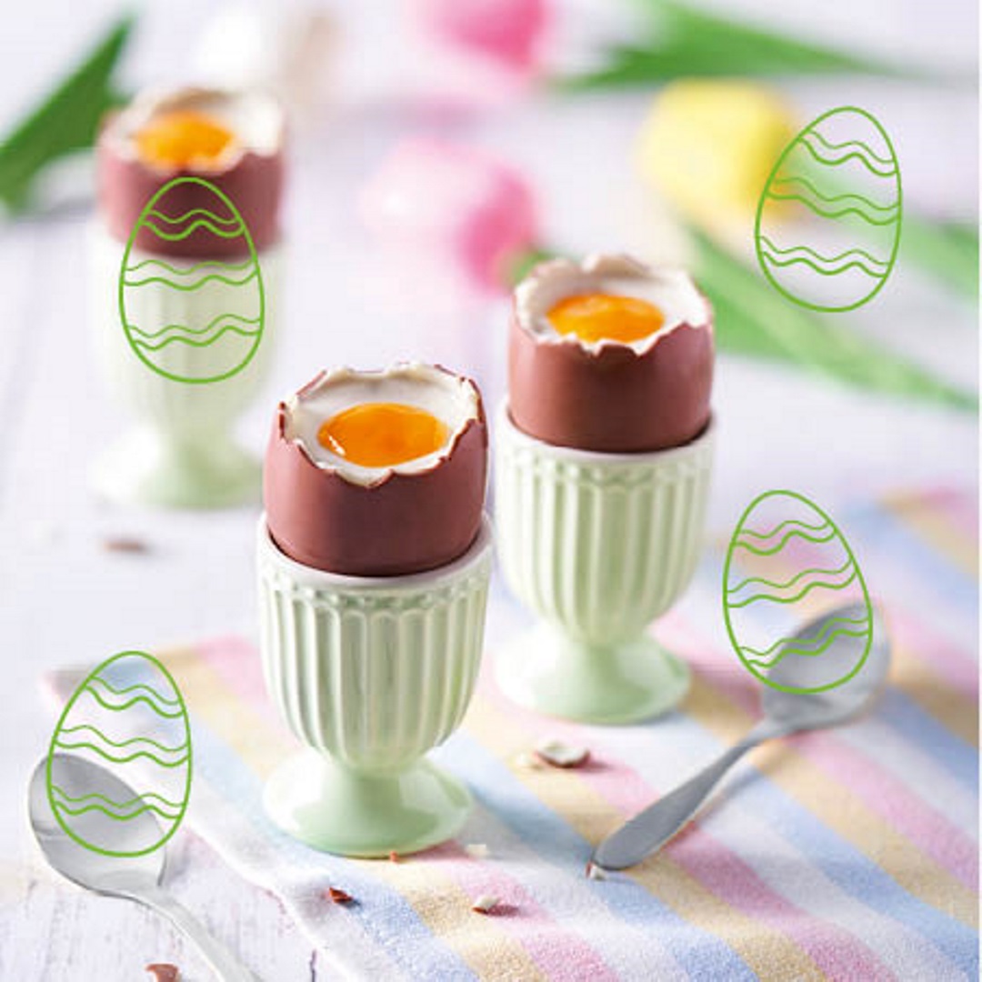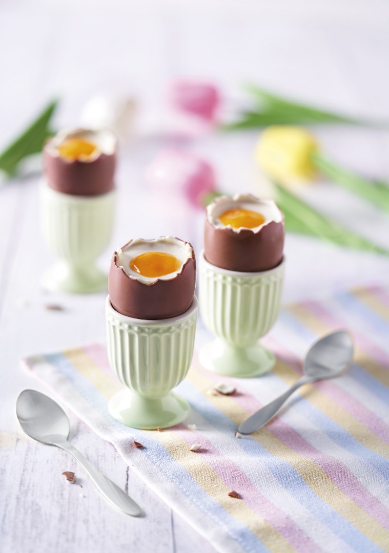 Schoko-Eier bis zum Servieren in den Kühlschrank stellen.
