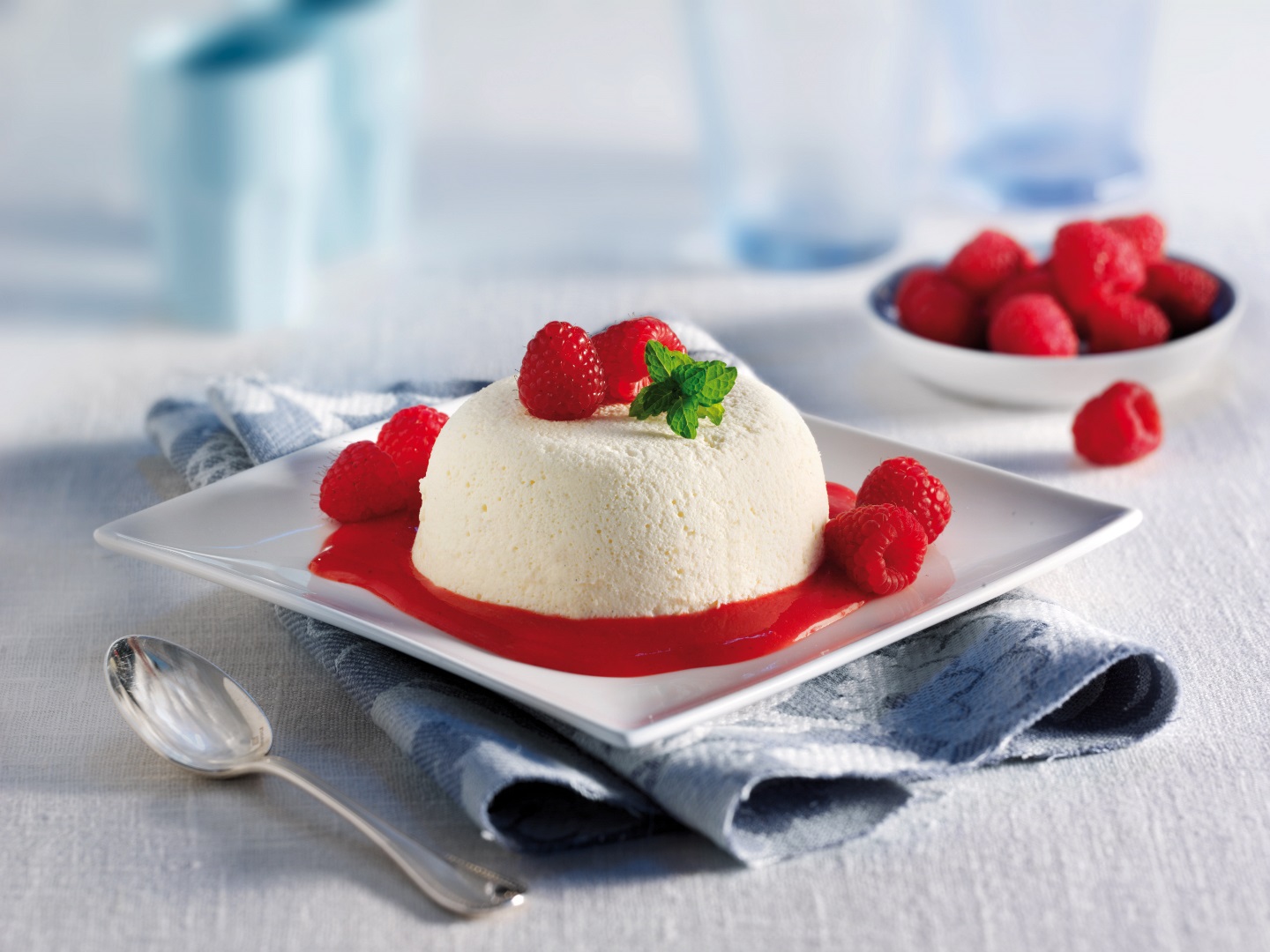 Tipp: Zur Bayerisch Creme passt auch hervorragend ein Fruchtspiegel – dazu Beeren nach Wahl waschen, pürieren, durch ein Sieb drücken, um die Kerne zu entfernen, und das Püree mit etwas Diamant Puderzucker verrühren. Bayerisch Creme auf dem Fruchtspiegel anrichten.