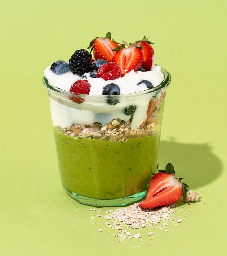 Statt Beeren eignet sich auch Mango als perfekter Gegenpol zum herberen Matcha.