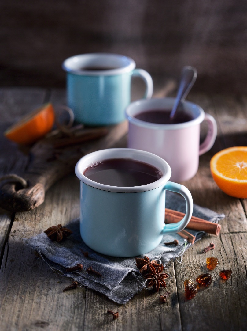 Orangensaft und -schale zusammen mit Vanillemark und -schote sowie Gewürzen, Teebeuteln und Diamant Krusten Kandis in einen Topf geben. Mit kochendem Wasser übergießen und ca. 10 Minuten ziehen lassen. Anschließend absieben.