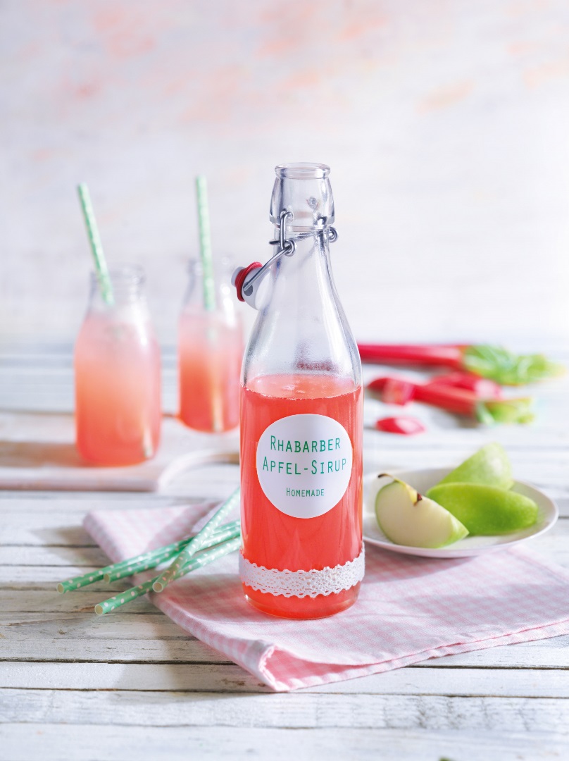 Der Sirup aus Rhabarber und Apfel schmeckt lecker und erfrischend in (Mineral-)wasser!