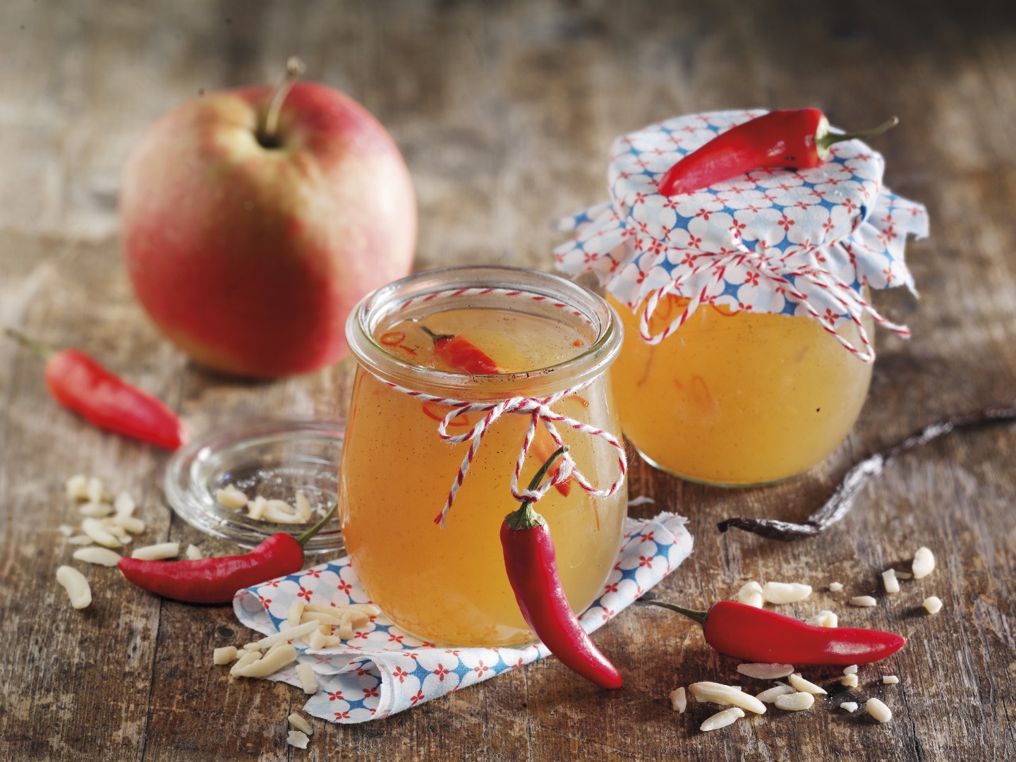 - Besonders hübsch sehen die Gläser aus, wenn in jedes eine ganze kleine Chilischote reingelegt und das Gelee darauf gegossen wird.