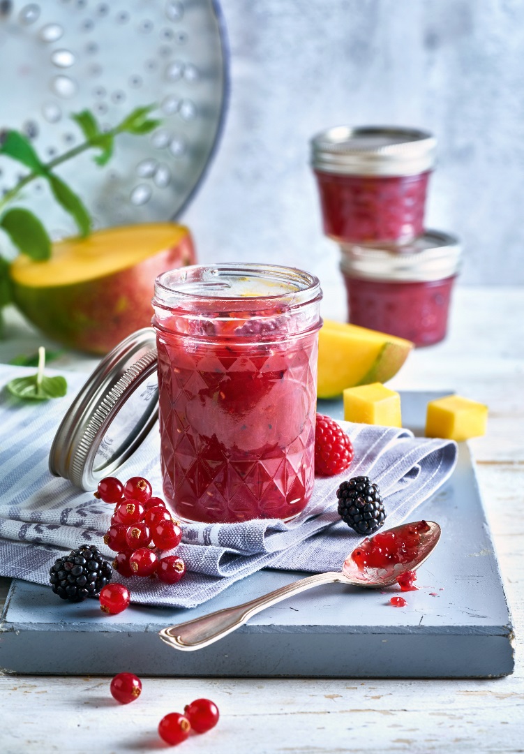 Feine Kombination aus tropischer Mango und intensiv-fruchtigen heimischen Beeren. In Küchenmaschinen mit Kochfunktion noch leichter zuzubereiten!
