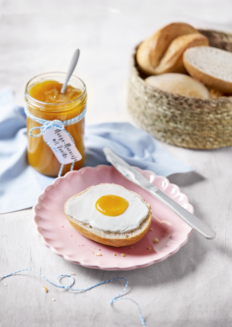 Wie cool ist das denn?? Dieser Fruchtaufstrich schmeckt nach Frühling und ist dank Gelierzucker 3:1 nicht zu süß. Serviert in Spiegelei-Optik sieht er einfach witzig aus – und das nicht nur zum Osterbrunch!