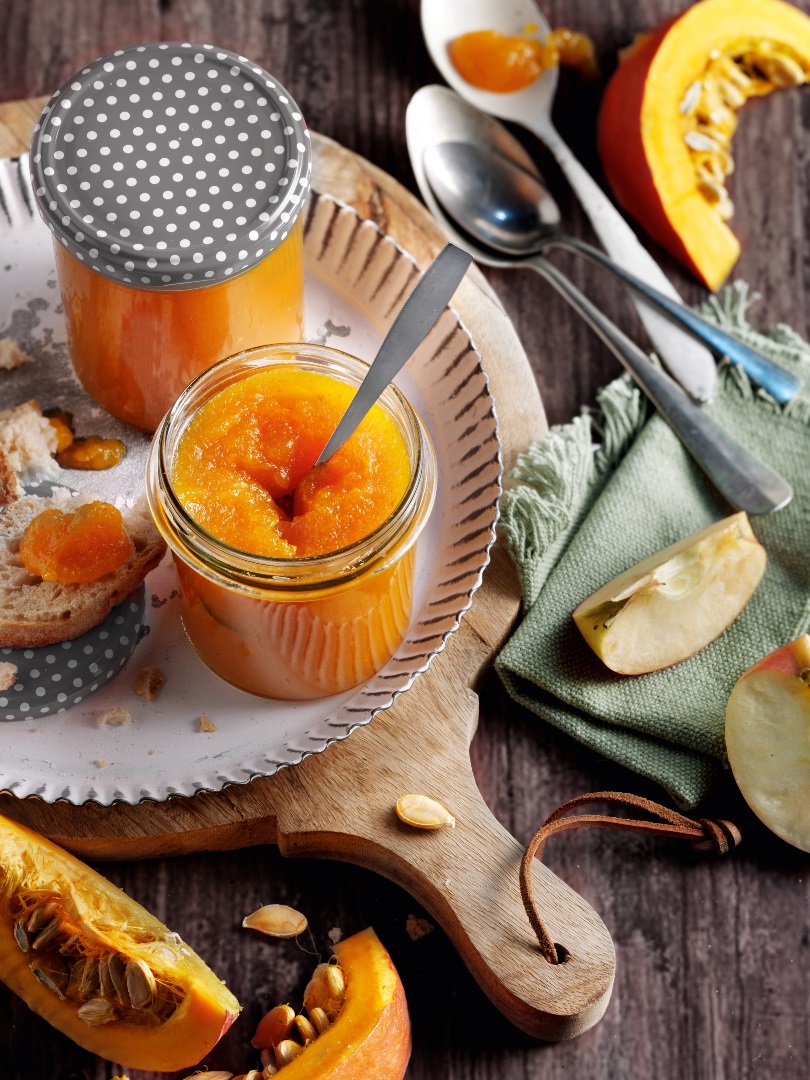 Die Konfitüre aus Kürbis und Äpfeln ist genau das Richtige für ein gemütliches Frühstück im Herbst. Fast, als könne man sich die goldene Jahreszeit köstlich aufs Brötchen schmieren.