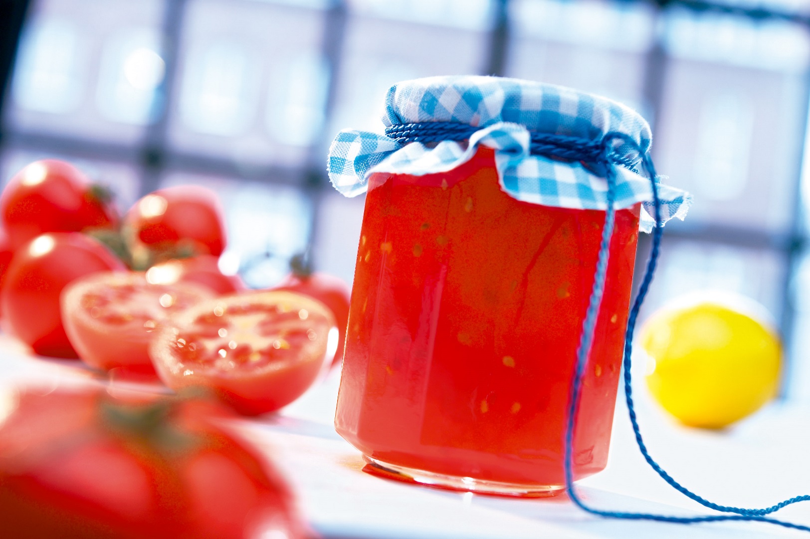 Tomaten mit kochendem Wasser überbrühen und die Haut abziehen. Danach pürieren, 1 kg abwiegen und mit Diamant Gelierzucker 1:1, Zitronensaft und -schale vermischen.