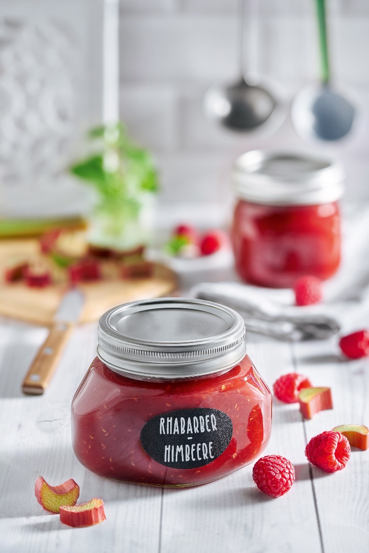 Rhabarber im Duett mal mit Himbeere - besonders köstlich auf dem Frühstücksbrötchen! Und in Küchenmaschinen mit Kochfunktion ratzfatz selbst gemacht!