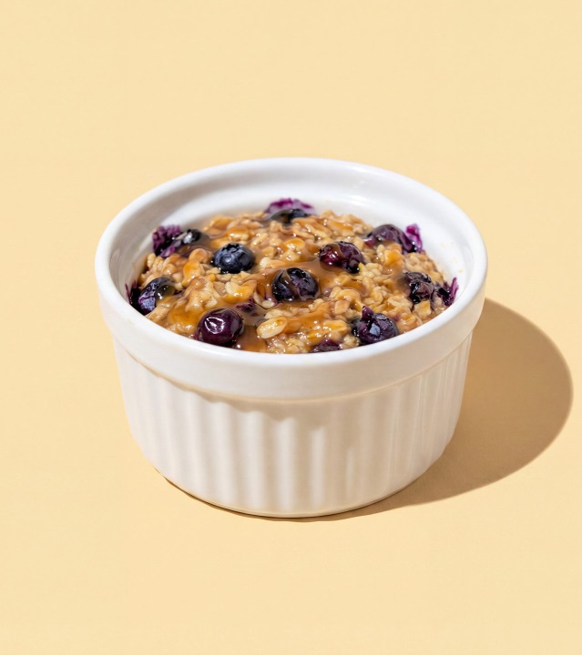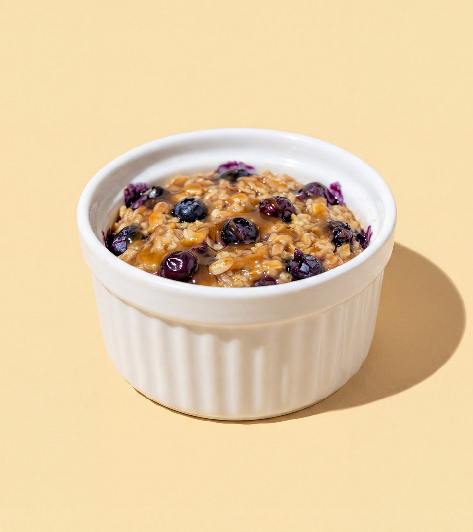 Die Backzeit kann je nach Airfryer-Modell leicht variieren. Die Baked Oats sind fertig, wenn die Oberfläche goldbraun ist und die Mitte bei leichtem Druck nicht mehr flüssig wirkt.