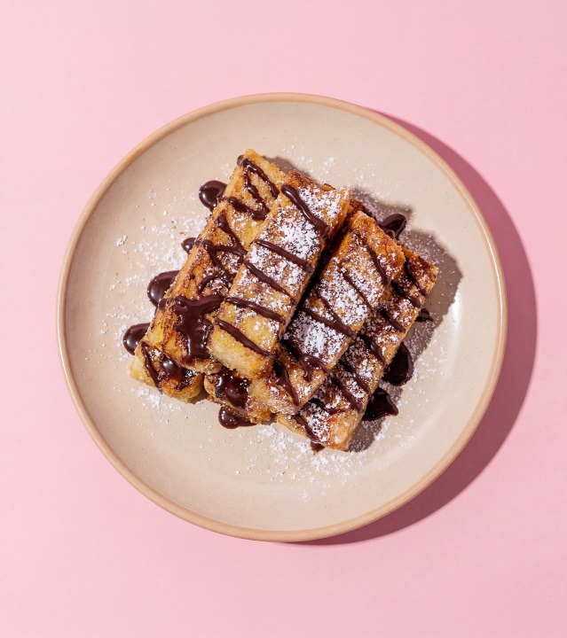 Die warmen French Toast Sticks auf einer großen Platte anrichten und mit frischen Beeren servieren – besonders gut passen Himbeeren, Heidelbeeren oder in Scheiben geschnittene Erdbeeren. Ein Klecks Naturjoghurt oder leicht gesüßter Quark sorgt für eine frische, cremige Komponente und bildet einen schönen Kontrast zur warmen Zimtnote.