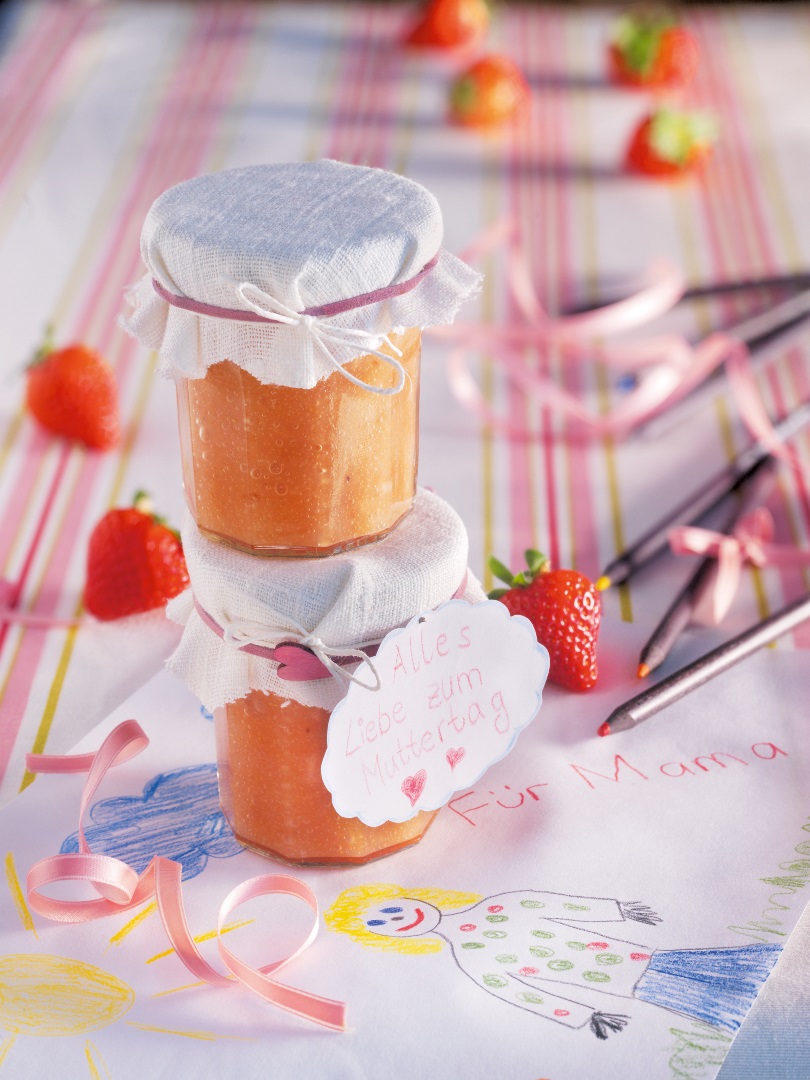 Der Fruchtaufstrich aus frischen Erdbeeren und Bananen ist kinderleicht gemacht.