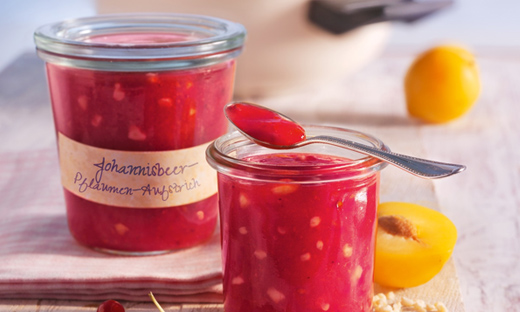 Achte unbedingt auf die Frische und verarbeite nur einwandfreie Früchte. Du hast noch tiefgekühlte Früchte im Eisfach? Super! Wiege die Früchte bereits im tiefgefrorenen Zustand ab und verwende sie zusammen mit der Auftauflüssigkeit. So kannst du selbst im Winter frisch gekochte Erdbeer-Konfitüre und Co. genießen.