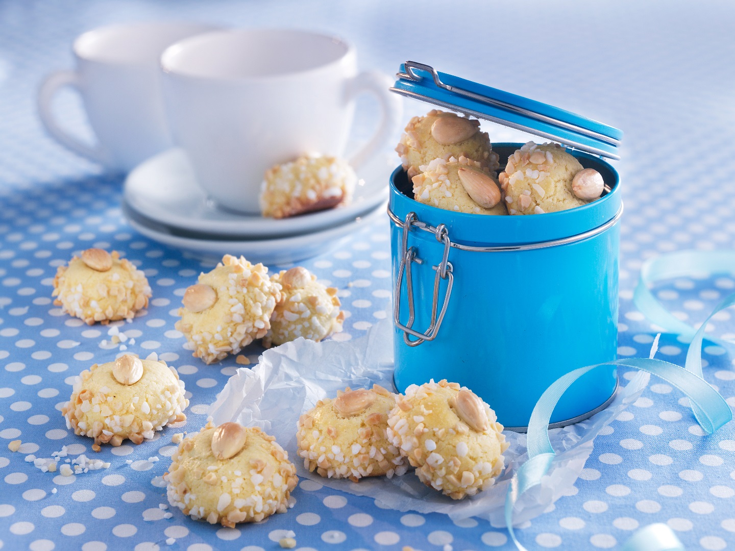 Feines Mürbeteiggebäck mit knackigem Mandel-Hagelzucker-Überzug