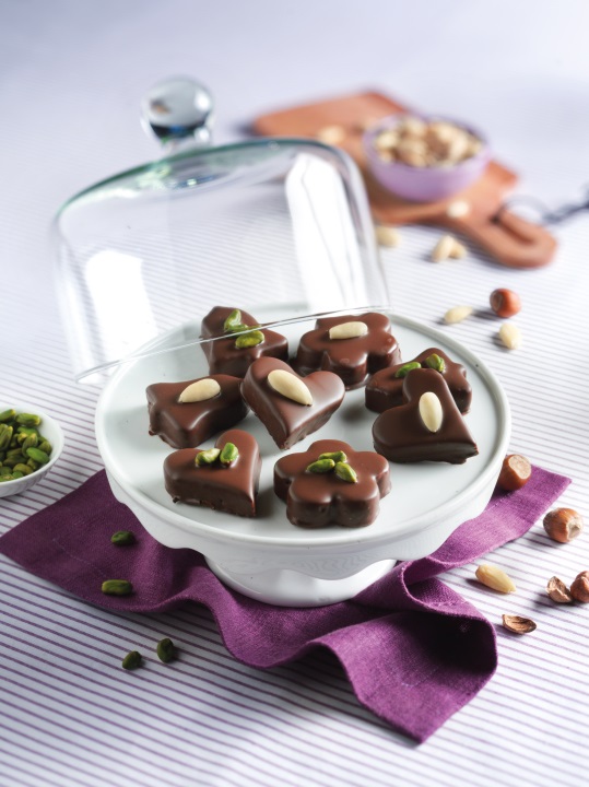 Mit Mandeln oder Pistazien verzieren und trocknen lassen.