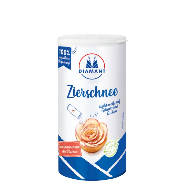 Butter schmelzen. Marzipan-Stollen sofort nach dem Backen mit Butter bestreichen. Nach dem Erkalten dick mit Diamant Zierschnee bestreuen.