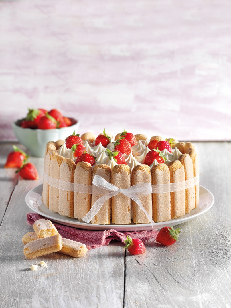 Erdbeeren und Sahne – eine Kombination, die nur noch mit einer frischen Joghurtcreme und knackigen Löffelbiskuits getoppt werden kann. Einfach köstlich, diese Erdbeertorte!