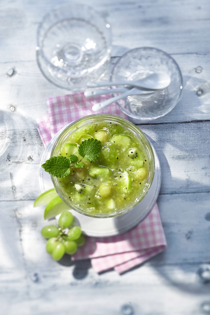 Tipps: Die Mengen der einzelnen Früchte können beliebig variiert werden, insgesamt sollte die Menge 750 g betragen Die Grüne Grütze sollte im Kühlschrank aufbewahrt und zügig aufgebraucht werden.