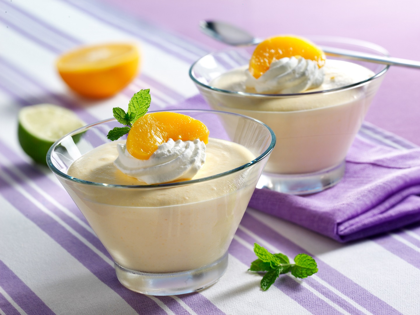 Fruchtg-sahnige Joghurt-Creme mit frischen Pfirsichen und Limette.