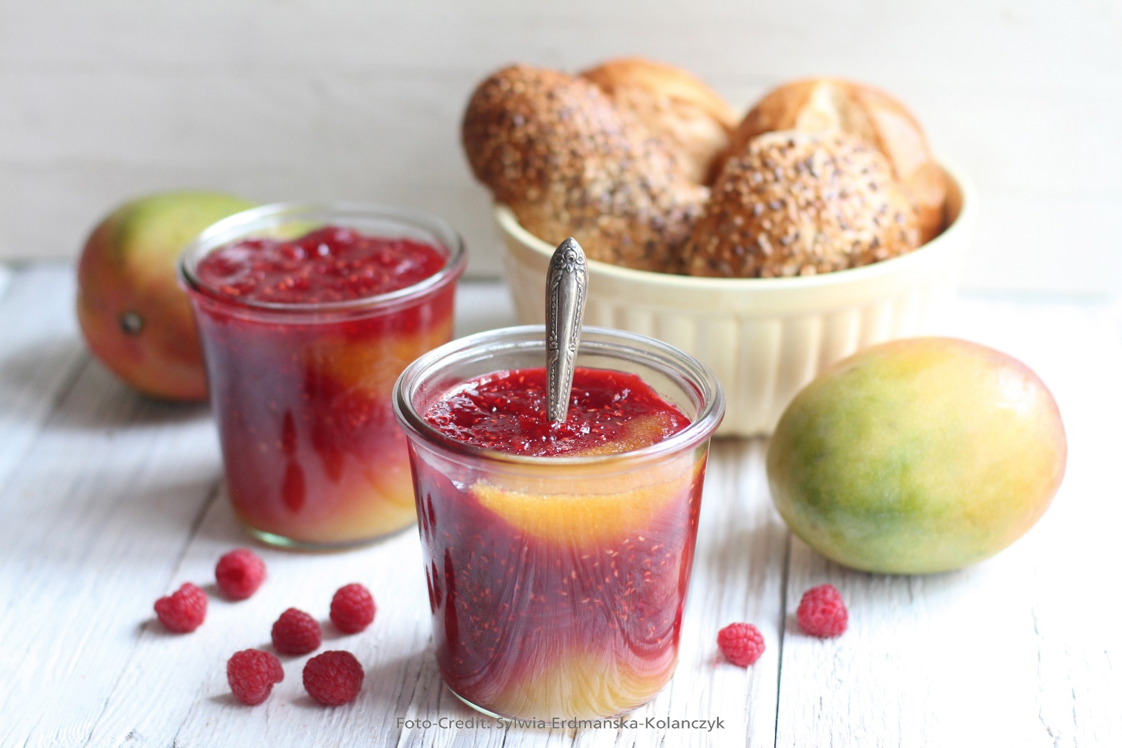 Mango-Himbeer-Aufstrich mit Sunrise-Effekt